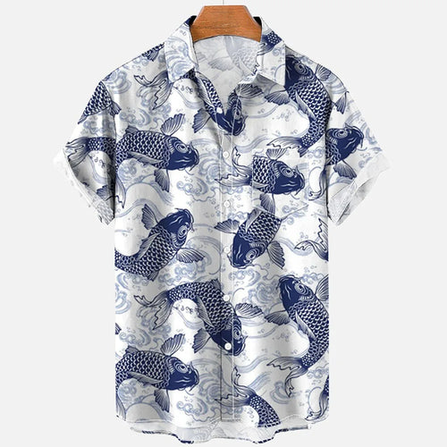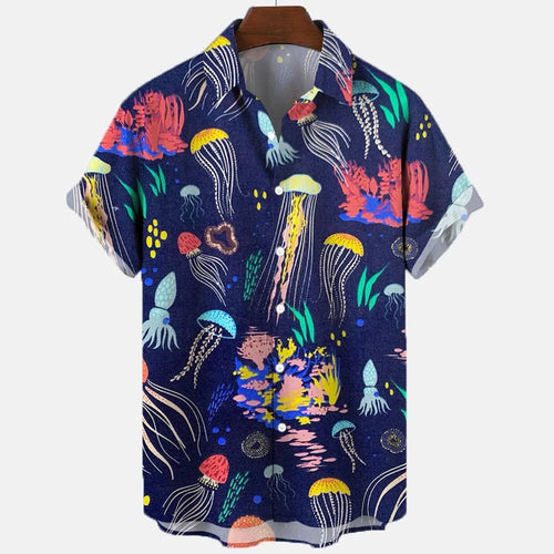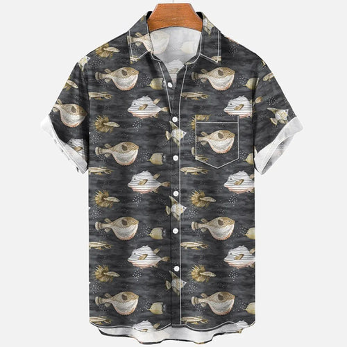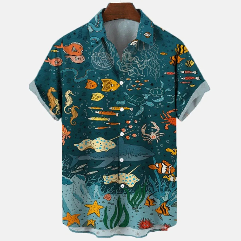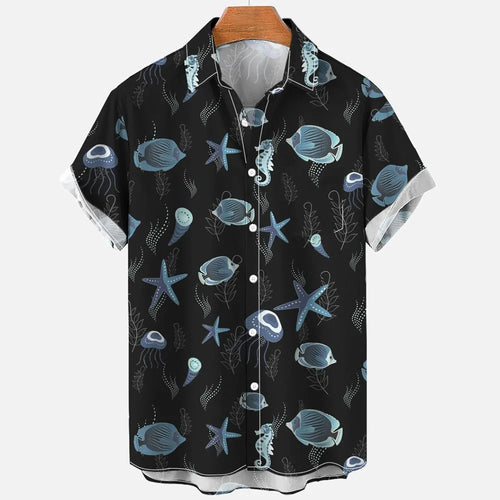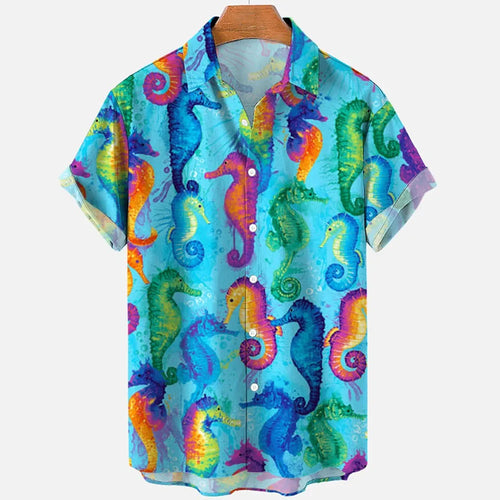 3d Sea Animal Seahorse Fish Print Lapel Hawaiian Shirt Men's Summer