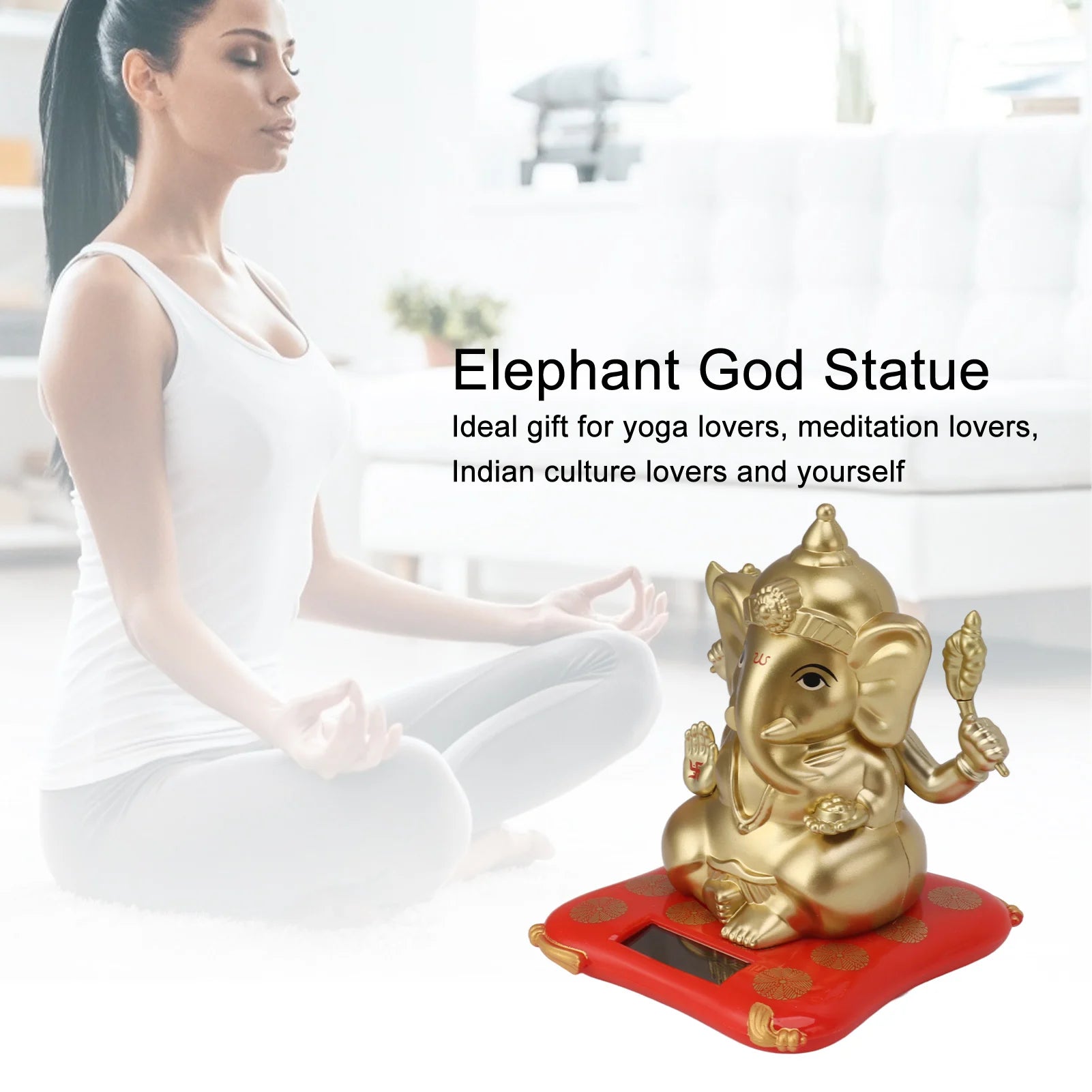4、Relaxing: Ganesha elephant god statues sway with solar powered statue wrist, vivid and funny, give people a relaxing feeling.
